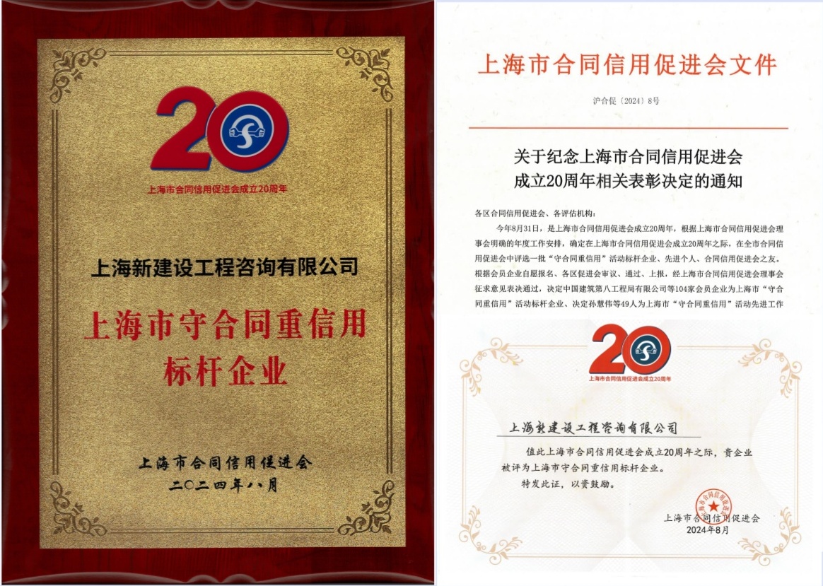 誠(chéng)信經(jīng)營(yíng) 樹標(biāo)桿形象——新建設(shè)咨詢榮獲“上海市守合同重信用標(biāo)桿企業(yè)”稱號(hào)
